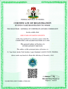 Like Stars on Earth Concept (LSE) is a fully registered business under the Corporate Affairs Commission (CAC) of Nigeria.